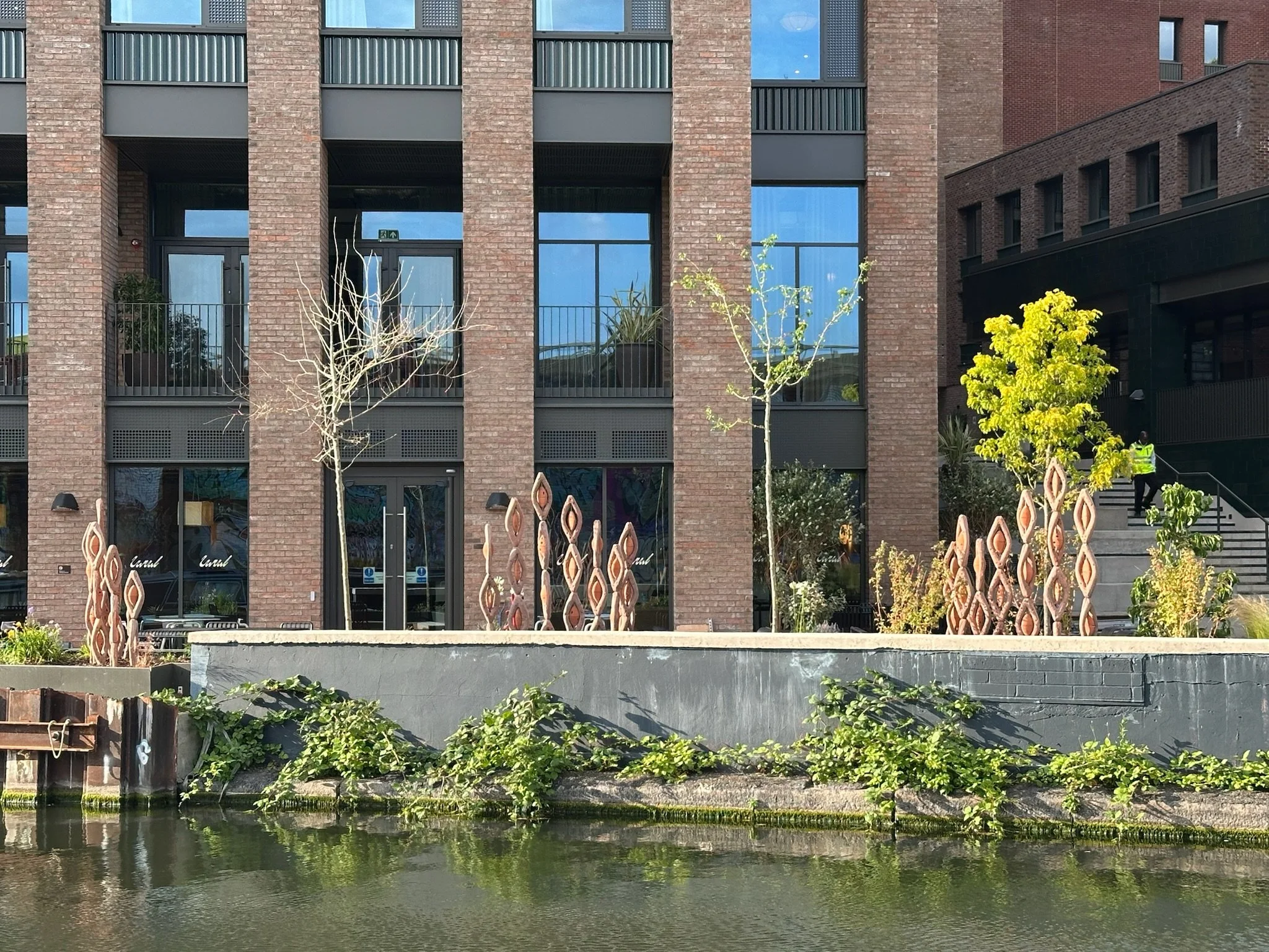 For Mason & Fifth’s long-stay hotel in Westbourne Park, Blast Studio designed a series of sculptural totems installed along the Union Canal. Conceived as bee hotels, the pieces create sheltered habitats for solitary bees and other insects within the site’s green spaces.